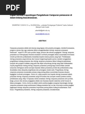 Abstrak kajian ini dijalankan bagi mencapai tiga objektif utama berkaitan campuran pemasaran yang diamalkan oleh syarikat proton.